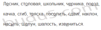 Лесник, столовая, школьник, черника, поезд, качка, сгиб, тряска, посолить, сдвиг, наклон, насыпь, шалун, шалость, извиниться.