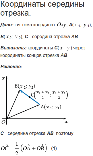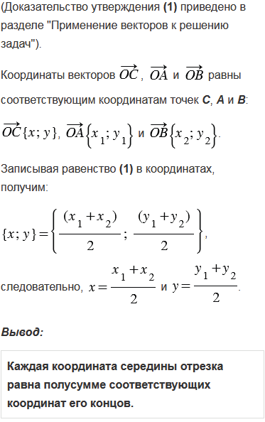 Выведите формулы для вычисления координат середины отрезка по координатам его концов.