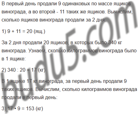 20. В первый день в киоске продали 9 одинаковых по массе ящиков винограда, а во второй - 11 таких же ящиков. Сколько килограммов винограда продали в первый день, если всего за два дня продали 340 кг винограда?