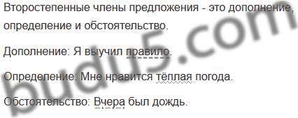 Какие второстепенные члены предложения вы знаете? Приведите примеры, запишите их.