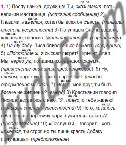 1. Запишите отрывки из басен И. А. Крылова. Расставьте недостающие знаки препинания и пропущенные буквы. Из других басен И. А. Крылова найдите и выпишите ещё три предложения с вводными словами и словосочетаниями. Определите, к какой группе относится каждое вводное слово и какое значение оно выражает в высказывании.