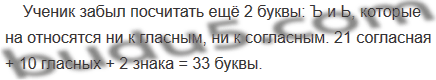 Один ученик недоумевал: «Говорят, что букв 33: 21 согласная и 10 гласных, но это же в сумме 31. Как же так?» Ответьте на вопрос незадачливого ученика.