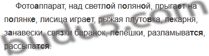 Фото..ппарат, над светл..й п..лян..й, прыга..т на п..лянк.., лисица игра..т, рыжая плуто..ка, п..карня, з..навески, свя..ки баранок, л..пёшки, разламыват(?)ся, рассыпат(?)ся.