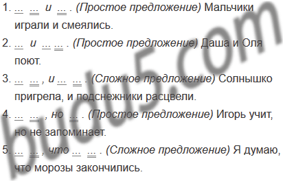 Докажите, что часть схем соответствует простым предложениям, а часть — сложным. Составьте предложения в соответствии с каждой схемой.