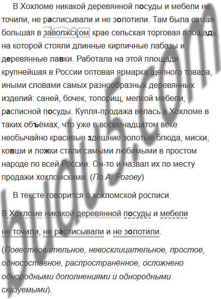 В Хохломе никакой деревянной п..суды и мебели не точили не р..списывали и не з..лотили.4 Там была самая большая в заволжском2 крае сельская торговая площа..ь на которой стояли длинные кирпичные лабазы и деревянные ла..ки. Работала на этой площади крупнейшая3 в России оптовая ярмарка щепного товара, иными словами самых разнообразных деревянных изделий саней бочек топорищ(?) мелкой мебели р..списной п..суды. Купля-продажа велась в Хохломе в таких об(?)ёмах, что уже в XVIII в. необычайно красивые ..дешние золотые блюда миски ко..ши и ло..ки стали самыми любимыми в простом народе по всей России. Он-то и назвал их по месту продажи хохломскими. (По А. Рогову)